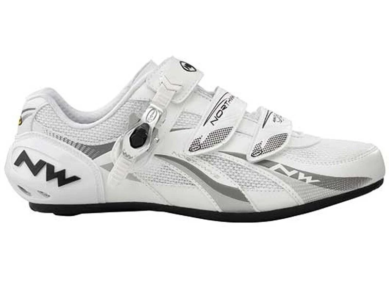 Mit dem Northwave Fighter SBS bekommt man einen hochwertigen Rennrad-Schuh für sehr performanceorientierte Rennrad-Fahrer. Der Ratschen-Verschluss ergänzt die drei Klettverschluss-Bänder und sorgt für eine sehr genaue Anpassung des Schuhs an den Fuß.